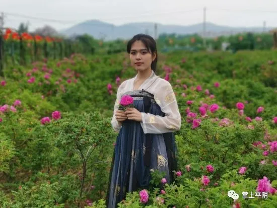 玫瑰是爱情的使者。据《说文》记载: “玫,石之美者;瑰,珠圆好者。” 意思是指,玫是玉石中最美的,瑰是珠宝中最美的。两个字合起来,可见玫瑰的妍丽至极。很多植物代表爱情,如洋桔梗、薰衣草、勿忘我等,但还是玫瑰最有爱的感觉,是表达爱情的上乘之物。正是如此,玫瑰历来是文学、绘画、影视、社交等所追捧的历久弥新的主题。平阴玫瑰花容秀美、芳香馥郁,被称为中国传统玫瑰的代表。近年来,平阴县委县政府积极发展玫瑰,打造爱情旅游目的地。如今已经有了相当的接待条件和服务项目。我这次在平阴玫瑰镇上,就遇到了一对又一对穿婚纱的青年游客。